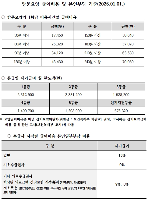 한서재가노인복지센터 2026년도 수가표 (주야간보호, 방문요양)